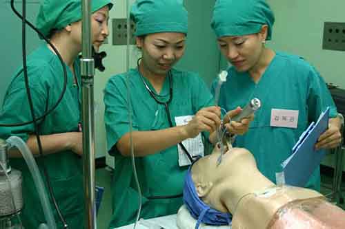 필기 시험에 합격한 수험생을 대상으로 실시된 실기시험 장면이번 실기시험은 임상 현장에서 업무수행시 꼭 필요한 종합적 판단능력 평가에 목적을 두었다.국립의료원에서 실시된 마취전문간호사 실기시험 모습이다.마취전문간호사는 7명이 응시해 전원이 필기와 실기시험에 합격하는 영광을 안았다.흡입마취유도, 기관내 삽관 영역에 대한 실기평가가 이루어졌다.