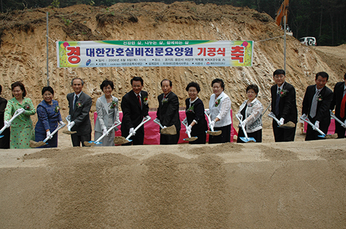 기공식 장면실비전문요양원 추진경과보고 장면홍보부스가 별도로 마련되었다. 축사를 하고 있는 김조자 대한간호협회장