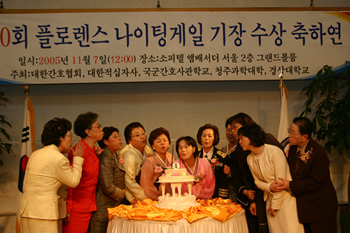 제40회 플로렌스 나이팅게일기장 수상을 축하하는 행사가 11월 7일 개최됐다.이번 행사에는 한완상 대한적십자사 총재와 역대 수상자, 간호계 인사 등이 대거 참석했다.김의숙 대한간호협회장은 우리 모두 나이팅게일의 정신을 되돌아보자고 말했다. 김화중 전 보건복지부 장관(대통령 보건복지 특별보좌관)이 참석해 자리를 빛냈다.역대 나이팅게일기장 수상자 들이 참…