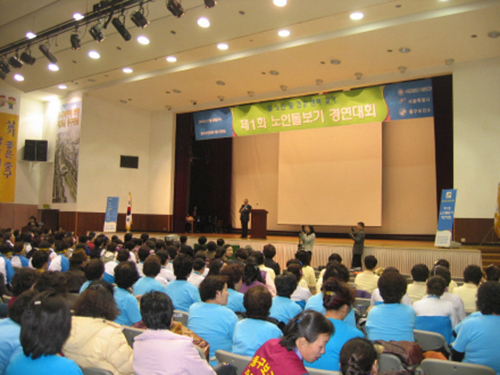 10월19일 대한간호복지재단이 운영을 맡은 용인시 노인복지회관이 문을 열었다.박혜자 노인복지회관장이 내외 귀빈들에게 건물 곳곳을 안내하고 있다.용인시 노인복지회관은 치매나 중풍 노인들을 위한 다양한 프로그램을 마련하고 있다.어르신들은 깨끗한 시설과 간호사와 사회복지사 등 전문인력의 서비스를 받게 된다.이날 개관식 행사에서 김의숙 이사장이 이정문 용인시…