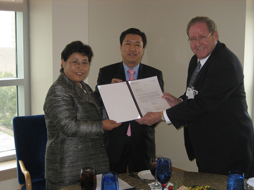 텍사스메디컬센터의 리처드 웨이너디 회장과 12월 9일 양해각서(MOU)에 서명했다.헤더 코페키(Heather Kopecky) 메모리얼 허먼병원 간호부장과 서명하고 있는 김의숙 회장