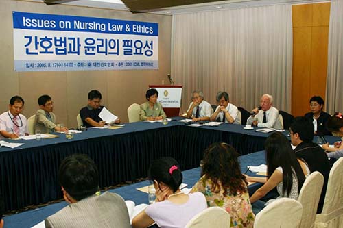 코엑스 인터컨티넨탈 서울호텔 프레스룸에서 개최된 기자회견간호법과 윤리의 필요성을 주제로 개최되었다.암넌 카르미 세계의료법학회 회장(이스라엘 하이파대 교수)히라바야쉬 카투수마사 일본의료법학회 회장(코쿠카와쿠임대)박길준 2005 ICML조직위원회 학술위원장(연대 법대 전 학장)
