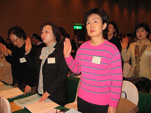 건의문과 결의문을 채택하고 있는 대의원의 모습