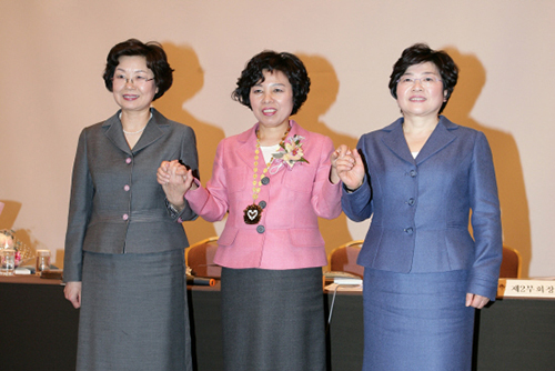 제32대 회장으로 당선된 신경림 회장, 김용순 제1부회장, 박호란 제2부회장