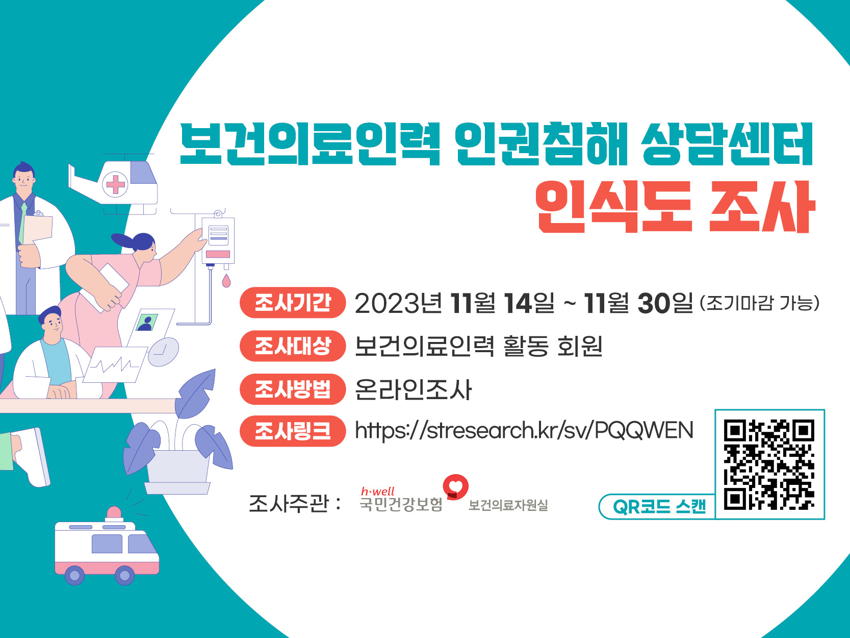 | 313 | 공지 | 보건의료인력 인권침해 상담센터 인식도 조사 |